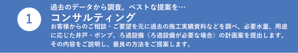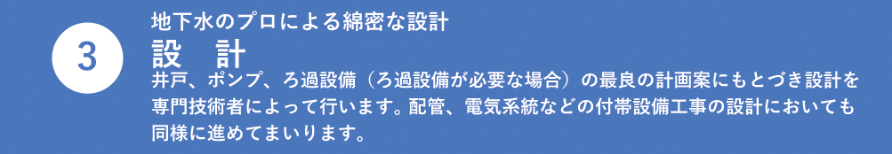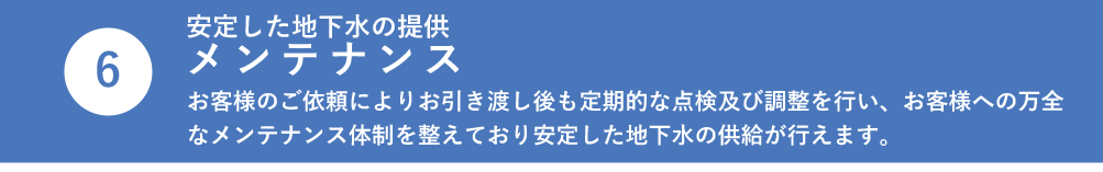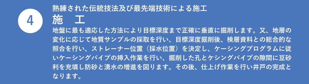 地下水採取から給排水管迄水回りを一貫して施工。公共事業を中心に県内全域で広く信頼を得ています。
